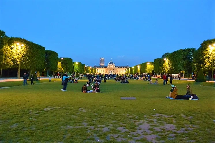 Waiting for the Eiffel Tower to sparkle by Champ de Mars
